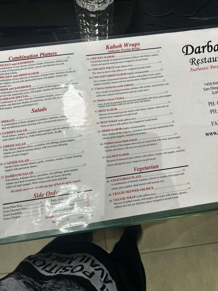 Darband Restaurant, located in San Diego, offers a diverse menu featuring Persian and Iranian wraps as well as delicious desserts. The restaurant provides a range of amenities such as delivery, takeout, reservations, and vegan options. Customers rave about the exceptional service and generous portions of food. The Darband special, a popular choice, includes a variety of skewers, grilled vegetables, and saffron rice. Reviewers highlight the quality of the dishes, with one customer praising the salmon kabobs and another recommending the baklava. The spacious and modern restaurant is ideal for gatherings and parties, with attentive waitstaff and a welcoming atmosphere. If you're in the mood for flavorful Persian cuisine and attentive service, Darband Restaurant is a must-try.